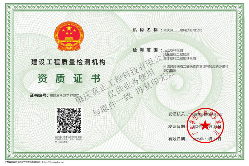 建設(shè)工程檢測(cè)質(zhì)量機(jī)構(gòu)資質(zhì)證書(shū)
